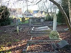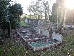 Although most military burials take place in the nearby Aldershot Military Cemetery, there are 57 men from all three services buried in Aldershot Cemetery who died on active service during World War I and World War II.[1]