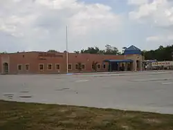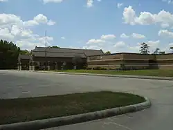 The current headquarters building is the M.B. Sonny Donaldson Administration Building, a two-story facility in unincorporated Harris County, Texas, across from Nimitz High School.[49] The school district acquired the facility in spring 2015 from Baker Hughes and opened it on March 21, 2016, with the dedication ceremony on April 19 of that year. The funds to purchase it came from the general operating budget.[50]