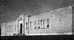 On June 18, 1932, District 29 residents voted 123-44 for a $40,000 bond to consolidate the four schoolhouses for white students (Aldine, Brubaker, Higgs and Westfield) into one new centralized school.[12] This two-story brick building would contain 12 classrooms and an auditorium.[13] It would house grades 1-7 and allow the district to offer high school classes (grades 8 and 9) for the first time since the Hartwell School had closed.[14] When the 1932–33 school year began, high school students met at Memorial Baptist Church, located at East Montgomery Road (today's Airline Drive) and Gulf Bank.[15] The new, as yet unnamed school opened in February 1933 at the intersection of Aldine-Bender Road and Aldine Westfield and immediately was filled to capacity.[15] District 29 added grades 10 and 11 in 1933–34 to complete what was then considered a full high school program.[16] On May 25, 1934, the now-christened S.M.N. Marrs School graduated its first class, consisting of nine students.[17] S. M. N. Marrs was named for Starlin Marion Newberry Marrs, who served as the state superintendent of public instruction for Texas from 1923 to 1932. Roughly a year later, in the spring of 1935, District 29 absorbed part of Common School District 49, also known as the North Houston District.[18]