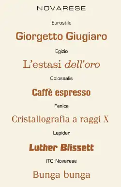 - Novarese (1978), wedge-serif font with a nearly upright italic.[11]