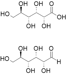 Aldonic acids are sugar acids with the general chemical formula, HO2C(CHOH)nCH2OH. They are obtained by oxidizing the aldehyde (-CHO group) of an aldose to form a carboxylic acid (-COOH group).[1] Aldonic acids are generally found in their ring form. However, these rings do not have a chiral carbon at the terminal end bearing the aldehyde, and they cannot form R−O−R′ linkages between different molecules.[2]