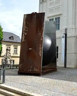 Starting with the project Chamber of Light (1998–2000)[21] in Vilnius and the design of the project Big Mirror (2000) for Oda Park in the Netherlands, Aleš Veselý often used the phenomenon of mirroring in his sculptures (Touches and distance, Brno, 2010,[22] Entrance to the Law, Gallery of Central Bohemian Region, Kutná Hora, 2014).