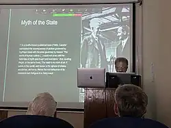 When considering wider implications of the persuasiveness of nationalist-inspired thinking and ideas, Aleksandar Bošković organized a round table debate dedicated to Benedict Anderson (1936–2015), at the Institute of Social Sciences in Belgrade.[36] This was at least in part due to the influence that Bruce Kapferer's ideas had on him. Bošković also published a paper on anthropological studies of myths and nationalism in 2013, in the oldest anthropology journal in the world, Zeitschrift für Ethnologie - as a review article of Kapferer's major book.[37] He wrote a chapter that deals with Serbia's troubled relationship with her own past, and the inability of the country's elites to come to terms with its nationalistic past. This paper was based on a presentation from the conference held at Landskronna (Sweden), in early June 2012. The chapter's title is "Serbia and the Surplus of History: Being Small, Large, and Small Again".[38]