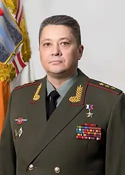 Aleksandr Yuryevich Chayko (Russian: Александр Юрьевич Чайко; born on 27 July 1971) is a Russian Ground Forces officer who was formerly the commander of the Eastern Military District from 12 November 2021 until he was replaced with Rustam Muradov on October 7, 2022.[1][2] He was awarded the title Hero of the Russian Federation in 2020, and is a colonel general as of 2021. He previously commanded the Operational Group of the Russian Armed Forces in Syria.