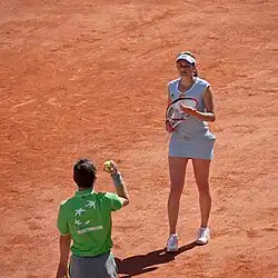 At the French Open, Wozniak was the 24th seed and became the first Québécoise to ever be seeded at Roland-Garros. Wozniak made it to the round of 16, before losing to Serena Williams.[13] With her French Open success, Wozniak became Canada's first representative in the fourth round of the French Open women's draw in 17 years, and the first Canadian woman to survive into the second week at the French Open since Patricia Hy-Boulais in 1992. Wozniak was also the first Canadian to reach the fourth round of a Grand Slam event since Maureen Drake qualified for the round of 16 at the 1999 Australian Open. "That's awesome for Canada and I hope to keep going", said Wozniak.[14]