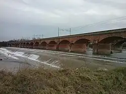 The works for the construction of the railway began on 16 January 1856: the initial project included the section between Alessandria and Stradella, as well as a branch from Tortona to Novi Ligure.[3] In June 1858 a decree was approved by the Chamber for the Facilitazione per l'unione della Società della ferrovia da Alessandria e Novi a Stradella con quella di Piacenza (Facilitation of the union of the railway company from Alessandria and Novi to Stradella with that of Piacenza)[4] In 1859, the territory of the Duchy of Parma and Piacenza were incorporated into the United Provinces of Central Italy and subsequently annexed to the Kingdom of Sardinia as a result of the plebiscite of 12 March 1860. Following the annexation, the railway was extended to Piacenza.