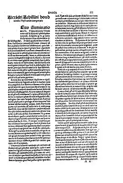 He was of a very simplistic nature. He was unskilled in the arts of adulation and double-dealing to such a degree that his most witty and imprudent students often regarded him as an object of ridicule, even though they honored him as a teacher. He also possessed quite a lively disposition. According to a colleague's description, he was handsome, tall but well proportioned, cheerful, happy, often smiling, and affable.[6] Achillini never married. His reputation among his colleagues was admirable and he was highly respected. And although Achillini was well-read and formidable in debate, he was said to be somewhat rigid and stiff in his lecturing. After his death, many people were extremely devastated. His philosophical works were printed in one volume folio, at Venice, in 1508, and reprinted with considerable additions in 1545, 1551 and 1568.[3]