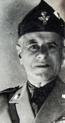 Having become colonel on June 4, 1934, and definitively passed to the automobile corps on 1 January 1940 and remained in Turin, being promoted to brigadier general of the reserve on January 1, 1942. From May 1941 to January 1942 he was in North Africa, in charge of motorized transport services, earning a Bronze Medal of Military Valor. From 10 January 1943 he became head of the motorized transport services of the intendency of the Armed Forces High Command of Greece (11th Army), with headquarters in Athens. There, after the proclamation of the armistice of Cassibile on 8 September 1943, he was captured by the Germans on 16 September and sent to Offizierlager 64 /Z of Schokken, Poland.[6][7][8][9][10]
