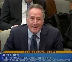 Alex Alben (born New York City), American technology executive, author and law professor, served as the first Chief Privacy Officer of Washington State from April 2015 to May 2019.[1] His career spans work for innovative Internet media companies with influential positions in industry groups seeking to create new laws for digital distribution of content. Previously, he was a candidate for the United States House of Representatives in 2004, a campaign which drew national attention because of the high tech district and the media personalities involved in the race, as noted by media coverage in The New York Times, "In a House Campaign With Personality, One Candidate Has the Microphone," June 12, 2004.[2] He ran as a Democrat in the Eighth Congressional District of Washington. Alben is the author of "Analog Days—How Technology Rewrote Our Future," and consults to public sector organizations, high tech and energy companies on privacy and security related matters. He is a Lecturer at the UCLA School of Law, teaching courses on Privacy, Cybersecurity and Internet Law. Artificial Intelligence, Antitrust and speech regulation on social media platforms are the focus of his current research and writing. He is a co-director of THEAIFORUM.ORG.