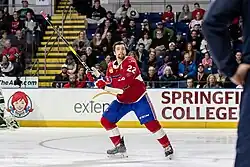 Continuing with the Rocket with periodic call-ups to play for the Canadiens, Belzile scored his first NHL goal on February 12, 2023, in a 6–2 victory over the Edmonton Oilers. At age 31, he was the oldest player to score their first career goal for the Canadiens since 35-year-old Herb Gardiner in 1926.[11] He played 31 games with the Canadiens during the 2022–23 season, ultimately registering six goals and eight assists, before being injured in an April 1, 2023 game against the Carolina Hurricanes. He was the Canadiens' nominee for the Bill Masterton Memorial Trophy for the year, awarded to "the NHL player who best exemplifies the qualities of perseverance, sportsmanship, and dedication to hockey."[12]