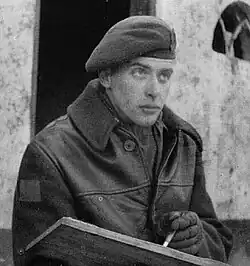 Colville married Rhoda Wright, who he had been friends with since his first year at "Mount A", in 1942 and enlisted in the Canadian Army shortly afterwards.[4] He enlisted in the infantry, eventually earning the rank of lieutenant. He painted in Yorkshire and took part in the Royal Canadian Navy's landings in southern France.[5] He was then attached to the 3rd Canadian Division. After being in the army for two years, and because he was a fine-arts student, he was made an Official Second World War artist in May 1944.[6] His unit relieved the 82nd Airborne Division at Nijmegen, Netherlands, in mid-September 1944 during Operation Market Garden and remained there until the following February.[6] He continued on to tours in the Netherlands and Germany, where he was also tasked with depicting the horrors of the Bergen-Belsen concentration camp.[5][7] Colville's painting Bodies in a Grave (1946), a scene of emaciated corpses in a Bergen-Belsen burial pit, is based on images he captured with his army-issue camera at the concentration camp.[8]