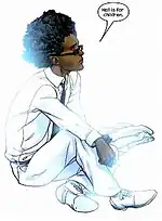 In the pages of Avengers Undercover, Alex was resurrected by Daimon Hellstrom to become Nico's teacher in battle strategy, and to help her cope with her increased dark magical powers.[12][13] When that series ended, Alex told her that he was bound to Hellstrom and joined the super-villainous team, Young Masters.[14] Wilder reappeared in the pages of Power Man and Iron Fist throughout the second half of the 2016-2017 series. In that book, Alex set up shop in Harlem, attempting to restart the Pride by using mystical software to wipe out villains' police records and even spreading a demon drug called Redemption.[15] The Heroes for Hire didn't stand for that though, and put a stop to Wilder's schemes, exorcising his own demon, but leaving him relatively unharmed, leading to his reappearance at the Runaways hostel's doorstep with the children of Gibborim in tow.[15][16][17]
