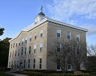 Alexander-Dickman Hall, formerly known as Old Sem, Old Main, and College Hall, is a historic building located on the campus of Upper Iowa University in Fayette, Iowa, United States. It was the first building built for the college, and for a number of years it was its only building.[2] Construction on the building began in 1855 and it was completed two years later. Its significance derives, in part, from it being "one of the largest and best preserved native stone buildings still in use in Iowa."[3] Architecturally, the three-story limestone structure is influenced by several styles. Its simplicity of form reflects the Neoclassical style in its evenly spaced windows and arched doorway. The Palladian windows and the structure's tripartite arrangement capped by a triangular pediment of the main facade reflects the Federalist style. The bracketed eaves at the cornice reflects the Italianate style. The building is capped with a domed cupola. It received its present name in 1963 being named for the man who first financed to college (Alexander) and its president in the 1920s (Dickman). The building was listed on the National Register of Historic Places in 1976.[1]
