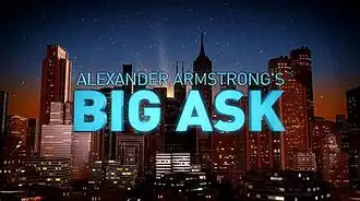 Alexander Armstrong's Big Ask is a British comedy panel show hosted by Alexander Armstrong. The pilot was shown on Dave on 30 May 2011. The guests on the pilot were Robert Webb, Katy Brand and Griff Rhys Jones.[1] After a positive reaction to the pilot, Dave ordered a full series which was filmed in October 2011 and broadcast from 6 February 2012.[2] A second series began 26 February 2013.