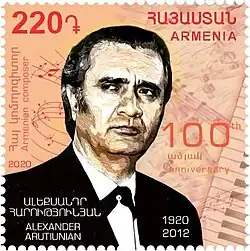 Alexander Grigori Arutiunian[a] (23 September 1920 – 28 March 2012), was a Soviet and Armenian composer and pianist, widely known for his 1950 Trumpet Concerto.[1] A professor at Yerevan State Conservatory, he was recognized with many awards for his work, including the Stalin Prize in 1949 and People's Artist of the USSR in 1970, as well as numerous honors from his homeland of Armenia.[2]