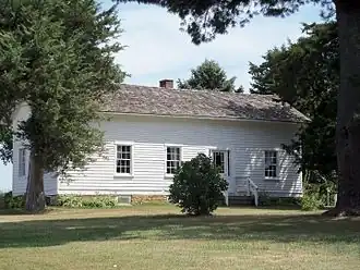 An addition was built onto the east side in 1846. It was a 2+1⁄2-story frame structure with brick nogging. The original chimney was removed and replaced with a connecting doorway between the original house and the addition. The main entrance into the house was moved to the right, yet it remains on the original structure.[2] A third addition was added after 1893 on the north side, which gave the structure an L-shaped floor plan. It too was of frame construction. In subsequent years the second floor and the third addition have been removed.