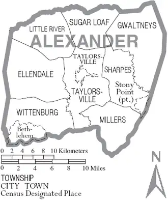 {{cite book}}: CS1 maint: location missing publisher (link) - ^ Martin, Jonathan. "Alexander County (1847)". North Carolina History Project. John Locke Foundation. Archived from the original on January 1, 2021. Retrieved December 8, 2012.