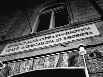 The Alexander Dukhnovych Theater (Rusyn: Tеатр Александра Духновіча, Teatr Aleksandra Duxnoviča, although the sign in the adjacent photo reads Tеатр Александра Духновича; Slovak: Divadlo Alexandra Duchnoviča), located in Prešov, is the only Slovak theatre providing plays in the Rusyn language.
