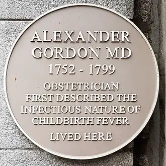 - ^ "Gordon, Alexander (1752–1799), physician". Oxford Dictionary of National Biography (online ed.). Oxford University Press. 2004. doi:10.1093/ref:odnb/37469. Retrieved 19 June 2020. (Subscription, Wikipedia Library access or UK public library membership required.)