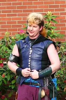 ![]() Alexander James Adams performing with Tricky Pixie in 2009 at Faerieworlds. | |