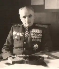 Alexander Grigoryevich Kapitokhin (Russian: Александр Григорьевич Капитохин; 6 June 1892 – 13 August 1958)[1] was a Red Army lieutenant general. Kapitokhin commanded a sector in the final defence of Sevastopol and was later the commander of the Soviet Airborne Troops (VDV).[2] He was awarded the Order of Lenin and three Orders of the Red Banner.[3]