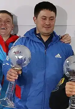 Alexander Vladimirovich Kasjanov (Russian: Александр Владимирович Касьянов, born 30 September 1983)[1] is a Russian bobsledder who has competed since 2006. He has competed at the 2014 Winter Olympics, where he got 4th place in two-man and four-men event. On November 29, 2017, he was disqualified for doping and received a life-time ban from the Olympics.[2]