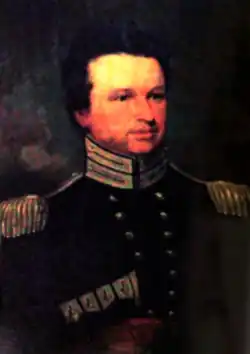 Thompson enrolled in the West Point Military Academy in 1810 at the age of 17. He graduated at the start of the War of 1812 and was commissioned as a First Lieutenant in the 6th Infantry Regiment. Thompson first fought in Canada during the two failed invasions of General James Wilkinson north of the St. Lawrence River, and afterwards he was promoted to Captain.[3] He then fought at the Battle of Plattsburgh in 1814. During this battle, Thompson commanded 100 soldiers and successfully defended a bridge against attacks from the British Army.[2] After the War of 1812, Thompson was assigned to garrison duty at various U.S. Army forts in Louisiana, Kansas, Michigan, New York, Wisconsin, and Missouri, and he was promoted to Major in 1832.[4]