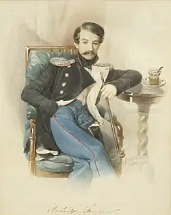 On 29 April 1840, he was transferred to the Cavalry Guard Regiment and renamed into cornet. On 21 April 1842, he was promoted to lieutenant.