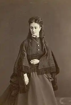 Wife (from 10 November 1848) – Ekaterina Pashkova (2 October 1829 – 15 October 1899), maid of honor of the court, daughter of Major General Alexander Pashkov (1792–1868) from a marriage with Elizaveta Kindyakova (1805–1854). According to Mikhail Osorgin, Madame Pashkov "was, if not a beauty in the full sense of the word, then, in any case, a very prominent, attractive person, and, as they said, was the subject of platonic adoration of her cousin Nikolai Mezentsev's entire life".[8] She was "a sweet and gentle creature; she was engaged in children and housekeeping", wrote Alexandra Smirnova about her.[9] For the merits of her husband, on 28 March 1871, she was awarded a knightly lady of the Order of Saint Catherine (Lesser Cross). She was buried in the church fence of the village of Tashla, Orenburg Province, in the family crypt. Born in marriage: