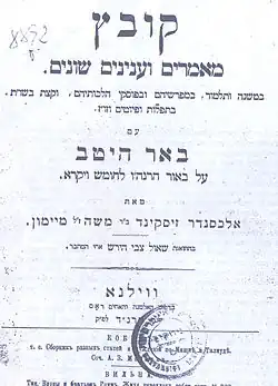 - ^ The book was published in 1894, seven years after his death, by his brother, Tzvi-Hirsch, in memory of his other brother, Shaul, who apparently had also died between 1887 and 1894.