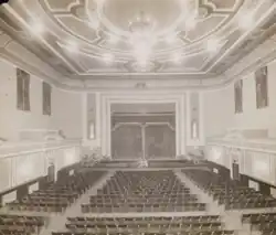 During WW1, the entire Palace was requisitioned as a transit camp for Belgian refugees[19] and then as an internment camp. The theatre was used as a dormitory, chapel, cinema and a space in which internees performed concerts.[10][17][18]