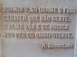 His remains lie in a majestic tomb in the Jerónimos Monastery at Belém, near Lisbon, which was raised by public subscription. His more important works have gone through many editions, and his name is still one to reckon with when considering modern historians of Portugal and of the Iberian peninsula.[2]