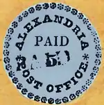 The Alexandria "Blue Boy" is a rare Postmasters' Provisionals stamp produced in Alexandria, Virginia (then part of the District of Columbia) in 1847.[2][3] There are seven known examples of Alexandria provisionals, however, the Blue Boy is the only specimen printed on blue paper.[4] The other six are printed on buff paper.[5] The Blue Boy remains affixed to its original envelope, and sold for $1.18 million in 2019, which is among the highest known prices paid for a philatelic item.[6]