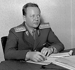 General Alexej Čepička (18 August 1910 – 30 September 1990) was a Czechoslovak communist politician. He held several ministerial positions in Czechoslovakia after World War II, including Minister of Justice from 1948 to 1950 and Minister of National Defence from 1950 to 1956.