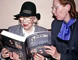 In the autumn of 1951 she was invited by Dorothea Tanning to go on a weekend trip in Hunterdon County.[4] It was on that trip that she once again met Duchamp, and romance developed shortly thereafter. They were both avid chess players. Teeny and Duchamp married in New York City on January 16, 1954. They lived in New York and in Paris; around 1958, the couple began spending summers in Cadaqués, Spain, on the Costa Brava.[1] They were together until his death in 1968. Following Duchamp's death, Alexina moved to Villiers-sous-Grez, near Paris, where she assembled an archive of photographs and other material documenting the life and work of her late husband. She maintained a close friendship with many of Duchamp's friends, including Jasper Johns, Richard Hamilton, composer John Cage, Gianfranco Baruchello, and choreographer Merce Cunningham.[5] Alexander Calder presented her with individually designed jewelry. She also served as an honorary trustee of the Philadelphia Museum of Art, which has the largest collection of Duchamp's work.[1]