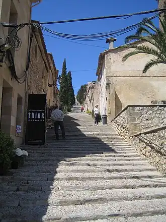 In January 1934, after the Romanian Premier Ion G. Duca had been assassinated by the fascist Iron Guard (through the Nicadori), Alexis sent from Paris a telegram condemning the movement and its "most demented attack."[71] Munteanu, who continued to visit Ana Rallet, asked her about her son's disappearance from public life, learning that he had emigrated, "this time for good", but also that he had married a second time and was "doing well." He faintly recalls being told that his new home was in the Azores.[23] Bilciurescu contrarily reports that he had moved to Spain "to achieve his financial independence".[16] Macedonski was in fact living a "quasi-primitive life" in Pollença, on the island of Mallorca,[29] which he had first visited in 1934.[11] His second daughter, Flora, commonly known as "Florita", was born on 17 February 1936 at the Macedonski home on Pollença's Calle Calvario, No 22, and raised Catholic.[72] Her father always spelled her name with an added diacritic, as "Florița" (the Romanian for "little flower").[73]