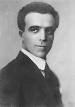 Alexis was the eldest of five surviving children from Alexandru Jr's marriage to Ana Rallet Slătineanu, who was from an "extremely wealthy" family[6] (the poet's oldest son, George, had died in infancy).[7] Through Ana, the painter was the nephew of jurists George and Manolache Slătineanu.[8] He himself believed that, on this Wallachian side, he descended from the ancient House of Basarab, and, "through women", from the Cantemirești.[9] Affectionately nicknamed "Puiu" ("the Cub"),[10] Alexis was born in Bucharest in 1884[11] or 1885.[12][13] This was some three years ahead of his brother Nikita (1888–1933).[12] Disgraced nationally for diatribes against the ailing Mihai Eminescu, Macedonski Sr had resettled in France during the early 1880s, but had returned to Bucharest in January 1885.[8] Upon announcing Alexis' birth in his Literatorul journal, Alexandru also placed a wager that his first-born would grow up into a "famous painter".[14] Both boys received training in visual arts, though Nikita was primarily known for inventing and trying to market a synthetic version of nacre.[12][15] A much younger brother, Pavel (1893–1945), was an actor; he also tried his hand at writing poetry and novels, but received bad reviews for such work.[12] Their sister, Ana "Nina" (1897–1958),[12] was not involved in literary life other than as the wife of poet Mihail Celarianu (having previously been the fiancee of another author, Oreste Georgescu).[16] Finally, the youngest Macedonski son, Constantin-Hyacint or "Dinu" (1898–1956), also trained and worked as an actor.[12]