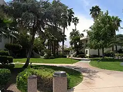 By the late 1990s, the resort was owned by Louis Habash.[18] In 1998, Alexis Park made an offer to purchase the adjacent 208-unit Americana Inn apartment complex, located west of the resort, with plans to convert it into a hotel building that would connect to Alexis Park. The resort also planned to construct a three-story, 120-unit hotel building. In addition, there were plans to convert the hotel lobby into a 7,079 sq ft (657.7 m2) casino after the purchase of the Americana Inn.[19][20] These plans did not materialize.[12]