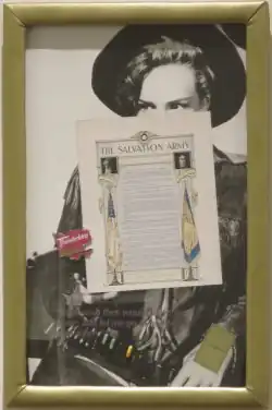 The objects used in Smith's works were commonly found on the street, at garage sales, thrift stores, and swap meets, and via gifts and chance encounters.[15] On her approach to collage, Smith stated, "there’s a kind of symbiosis to it—the things, the words, the background, and the objects. It's fused into a whole where they seem like they’ve always been together, or were meant to be together. The people that look at them put them together in their heads".[15] Her approach to collage utilizes a mixture of literacy with a conceptual point of view.