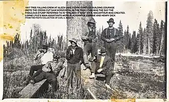 In late 1927, the insolvent company ceased operating,[416] and the sheriff seized its assets and those of its logging contractor, Liersch Logging Co., because of outstanding wages, creditors' accounts, stumpages and royalties. Unsecured creditors expected to receive little to nothing.[417] The advertised assets[418] attracted some sales,[419] Northland Spruce declared bankruptcy,[420] and Liersch Logging faced further seizures.[421] The Lyle Lumber Co. constructed and began operating a 25,000-foot capacity mill.[422][423][424] The millpond was an intact dam that Northland Spruce had installed previously on the creek. Clydesdale horses hauled the logs across the frozen lake from a logging point to the west.[425]