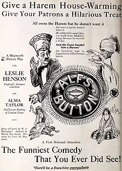 Alf's Button is a 1920 British silent fantasy comedy film directed by Cecil Hepworth and starring Leslie Henson, Alma Taylor and Gerald Ames. It was based on the 1920 novel Alf's Button by William Darlington. The film is about a British soldier who discovers a magic coat button which summons a genie to grant his various wishes. It was remade as a sound film in 1930.