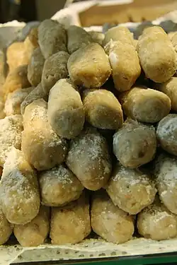 Alfajores are still made by craftsmen in Medina Sidonia using natural ingredients that include honey, almonds, hazelnuts, sugar, flour, and breadcrumbs, and mixed with natural spices.[15] The manufacturing process has been respected following a recipe found by Mariano Pardo de Figueroa in 1786.[16] In Medina Sidonia, the annual production of approximately 45,000 kilograms (99,000 lb) is mostly consumed in the province of Cadiz, but they are also famous in Sevilla, Malaga and Huelva.[17]