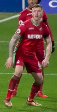 In the 2017–18 season, Mawson scored the only goal in a 1–0 home win against Liverpool on 22 January 2018 to help Swansea's survival hopes.[64] Despite this, the club struggled, particularly on the attacking point of view, and despite the player featured in all 38 Premier League fixtures, he did not prevent the club's relegation, which was confirmed on the final day of the season.[65][66]