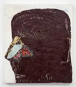 Describing these works, Robert Lue writes: "Often rough like the early banners, the Lectio works differed in that they appeared to be made from the remnants of some glorious icon.... Borysewicz literally strives to recreate meaning by bringing together splinters of sacred imagery with the basic wood and metal of our physical domain. Both tragic and gracefully matter-of-fact, they represent an honest coming to terms with the bankruptcy of the transcendent referent."[10] This theme of retrieval is consistent with Borysewicz's paintings and works on paper that often feature collaged pieces of pages from icon books.