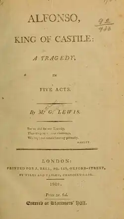 Alfonso, King of Castile is a historical tragedy by the English writer Matthew Lewis. It was published in November 1801, and was first staged at the Theatre Royal, Covent Garden the following year.[1] It is set during the reign of Alfonso XI of Castile during the fourteenth century.