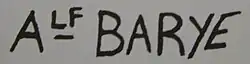Alfred "Alf" Barye (French pronunciation: [alf(ʁɛd) baʁi]; 21 January 1839 – 1882), usually known as Alfred Barye "Le Fils" (i.e. "Alfred Barye Jr."), was a French sculptor, of the Belle Époque, pupil of his father the artist Antoine-Louis Barye. In cooperation with Émile-Coriolan Guillemin, Barye did the artwork for "The Arab Warrior Knight on Horseback". Included in Barye's oeuvre were animalier bronzes as well as Oriental subjects. At his father's request, he signed his work as "fils" to differentiate his work from his father's.[1]