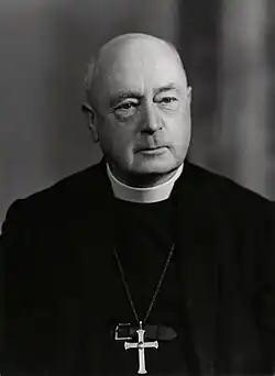 In churchmanship he was an Anglo-Catholic.[8] Politically interested in social justice and a priest who preferred work in slum communities and with youth, he was a member of the Christian Social Union from 1907, and from the time of the general strike of 1926 a member of the Labour Party.[3] While in Derby he became a friend of J. H. Thomas, a local Labour Member of Parliament and future cabinet minister.[1]