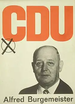 ![]() Candidate poster of Alfred Burgemeister for the 1969 Bundestag elections | |