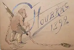 The poster collector Ernest Maindron (fr), who wrote the first essay about the illustrated poster in the Gazette des Beaux-Arts in 1884, and later published the first book on the subject (Les Affiches Illustrees) in 1886, mentioned the Choubrac brothers and Chéret among the pioneers of the illustrated poster.[21][22] Maindron praised Choubrac's bold line, sense of composition and highly decorative skills. According to Maindron, in his subsequent book Les Affiches Illustrees (1886–1895) published in 1896, Choubrac must have drawn more than four hundred posters for theatres, novels and industry products, before he switched his attention to the design of theatrical costumes, in which he was equally successful.[7]