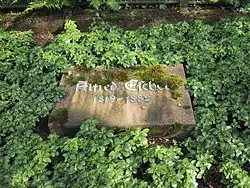 Escher faced serious health problems throughout his life. He suffered repeated bouts of ill health throughout his life and on many occasions was obliged to spend long periods in convalescence. His susceptibility to illness was highly incompatible with his phenomenal appetite for work. During the critical phase of the Gotthard Tunnel construction in the mid-1870s Escher nearly worked himself to death. In 1878 he fell so badly ill that he was unable to leave "Belvoir" for several weeks. His life became a constant alternation between illness and recovery: asthma, fever, eye conditions, boils. However, this did not prevent Escher from fulfilling his political and business obligations whenever he could. In late November 1882 he fell badly ill again. Carbuncles developed on his back and he was plagued by a virulent fever. On the morning of 6 December 1882 Alfred Escher died on his "Belvoir" estate at Zürich/Enge.[21] At his funeral service on 9 December 1882, which was held in Zürich's Fraumünster church, the Swiss political elite conferred the last honour on him: Federal Councillors, National and States Councillors as well as countless representatives of the Cantons were in attendance. In February 1883 a committee was formed for the purpose of erecting a memorial statue to Escher. The commission went to the sculptor Richard Kissling. The Alfred Escher memorial designed by Kissling and erected outside the Zürich main railway station was inaugurated on 22 June 1889. Alfred Escher was initially buried in the Enge cemetery, but when that was deconsecrated in 1925 his remains were moved to the Manegg cemetery.[22]